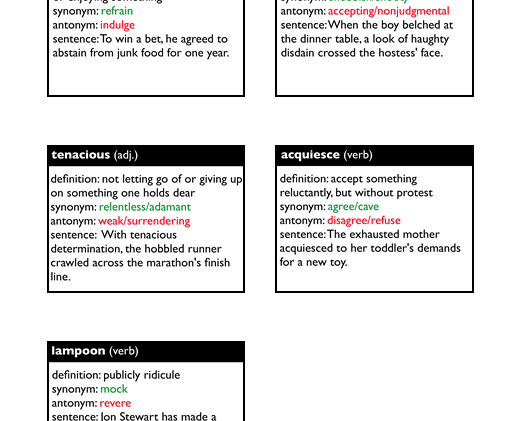 Vocabulary assessment is very important method of assessment in my classroom. The Common Core State Standards for English Language Arts require students to determine the meaning of grade-level words under Language standards strand four at every grade level. I additionally recognize that my students need to master challenging vocabulary to prepare themselves for college entry assessments, as well as for college classes and the workforce. Thus, my students are given a set of five new vocabulary words each week, and assessed over their basic knowledge of the words the following week. Please click on the slideshow below to view how I assess vocabulary in my classroom.